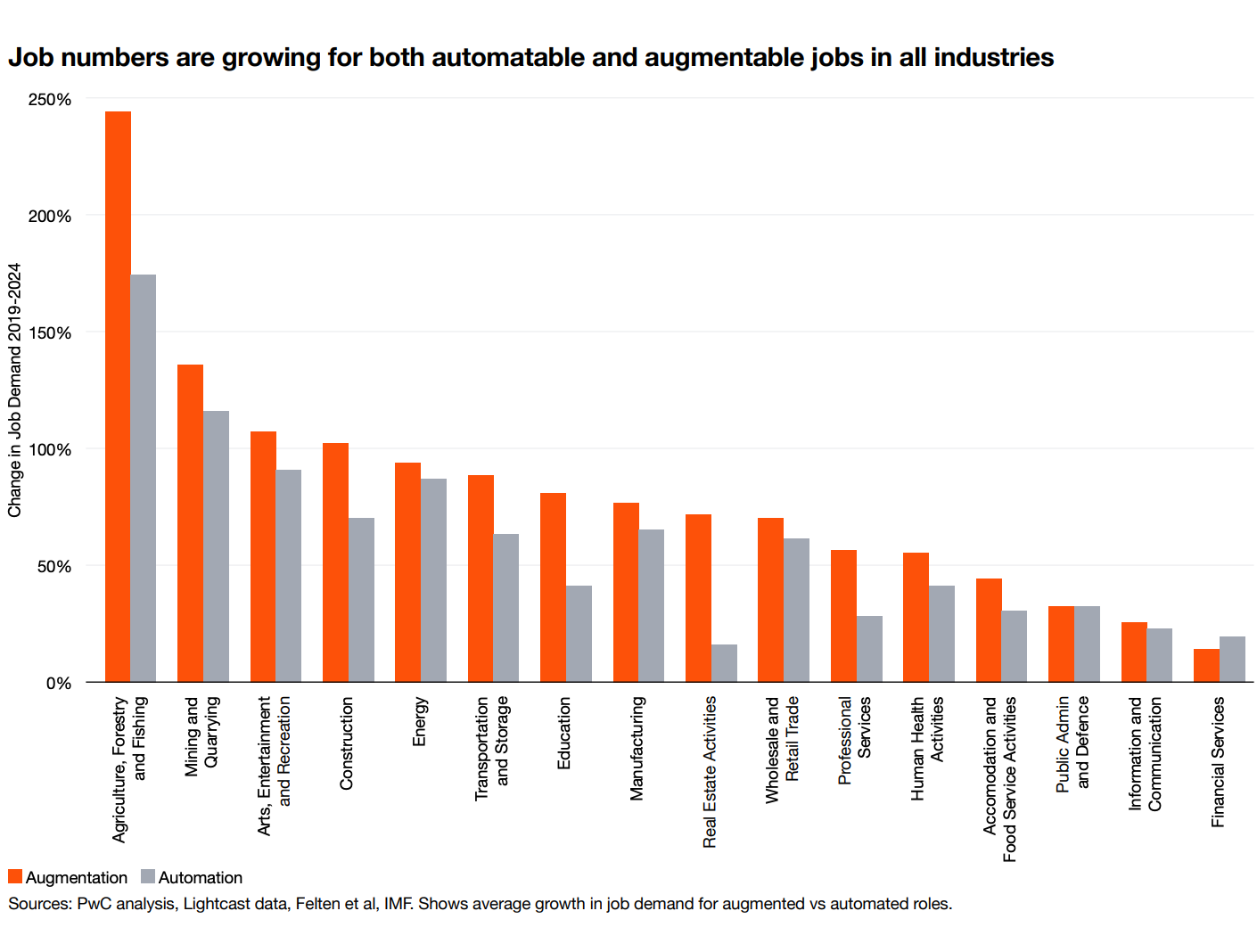 PwC’s latest data supports exactly that point: in practice, augmentation often matters as much as automation.7