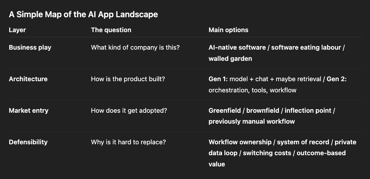 That is already useful, because too many people still talk about “AI apps” as if it were one single market. It is not. These are different strategic games with different economics and different moats.